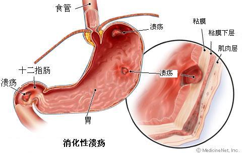 胃溃疡以反复发作的节律性上腹痛为临床特点,常伴有嗳气、返酸、灼热、嘈杂等感觉,甚至还有恶心、呕吐、呕血、便血。若作胃镜检查,可以清楚看见胃部有圆形、椭圆形溃疡灶。以往治疗胃溃疡多采用手术切除部分胃脏,后来研究出奥美拉唑等制酸剂,治疗消化性溃疡(胃溃疡、十二指肠溃疡)效果非常好,使得大部分患者可以免受手术之苦,但部分病情严重的患者,仍需手术,尤其是胃溃疡有恶变可能,治疗更应该慎重。