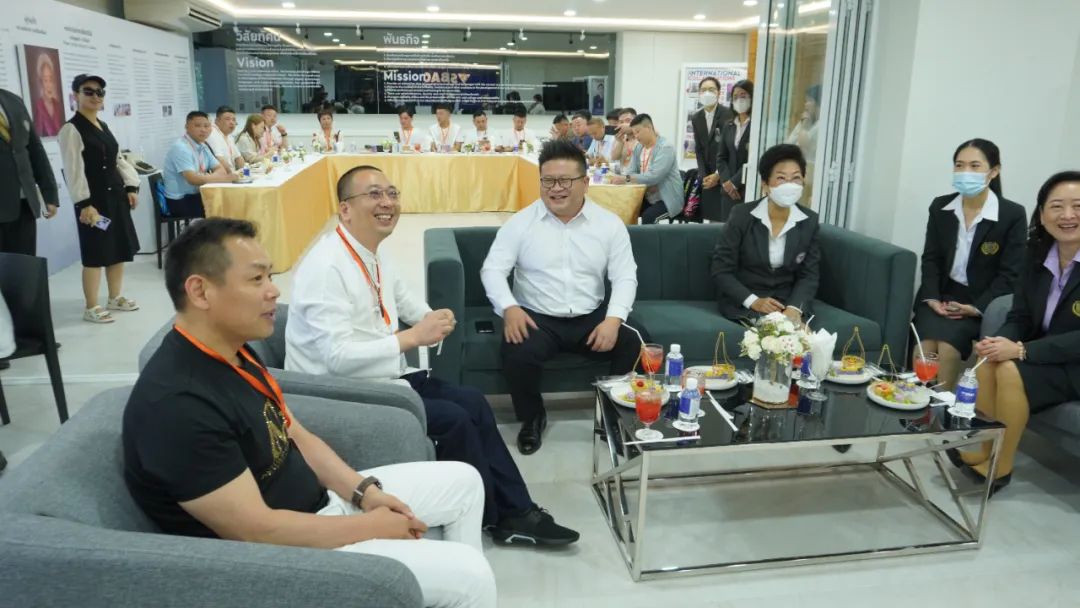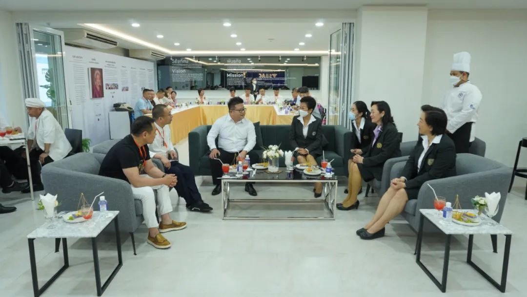 论坛开场前,曼谷北部大学校长、学监、校董与中方餐饮代表团茶歇交流